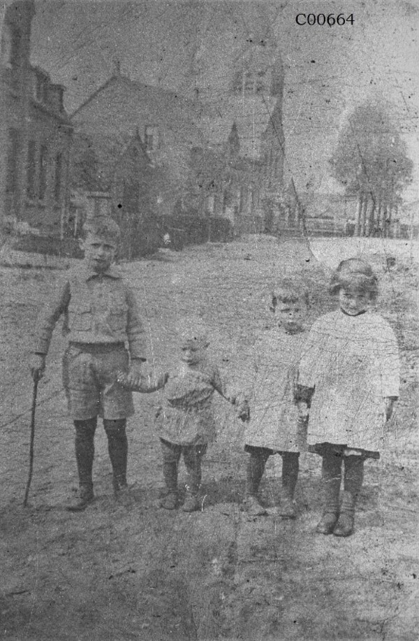 Foto C00664, er staat op de achtergrond een kerk. Welke? Een plaatje van voor de oorlog denken wij. Wie herkent de kinderen? Laat het ons weten en wij zetten de namen erbij.